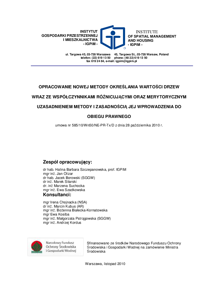 W 2010 roku powstał ważny dokument zatytułowany „Opracowanie nowej metody określania wartości drzew wraz ze współczynnikami różnicującymi oraz merytorycznym uzasadnieniem metody i zasadnością jej wprowadzenia do obiegu prawnego„, będący efektem prac zespołu ekspertów pod kierownictwem dr hab. Haliny Szczepanowskiej, prof. IGPiM, prowadzonych w ramach przygotowań do zmian stawek. Publikacja ta wciąż jest lekturą obowiązkową dla wszystkich osób zajmujących się tematem szacowania wartości drzew.